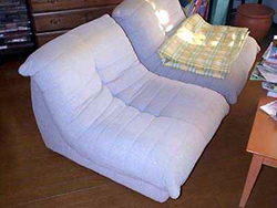 柔らかい曲面のファンシーなリビングチェアーです。 新居へのお引越しに合わせての張替でした。