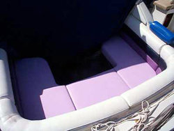 土台となる合板には防腐塗料、表皮を張る前にウレタンをビニールで包み、張りとめるステーブル釘はステンレスを採用、もちろん張り地は屋外使用に耐える製品を使っています。
